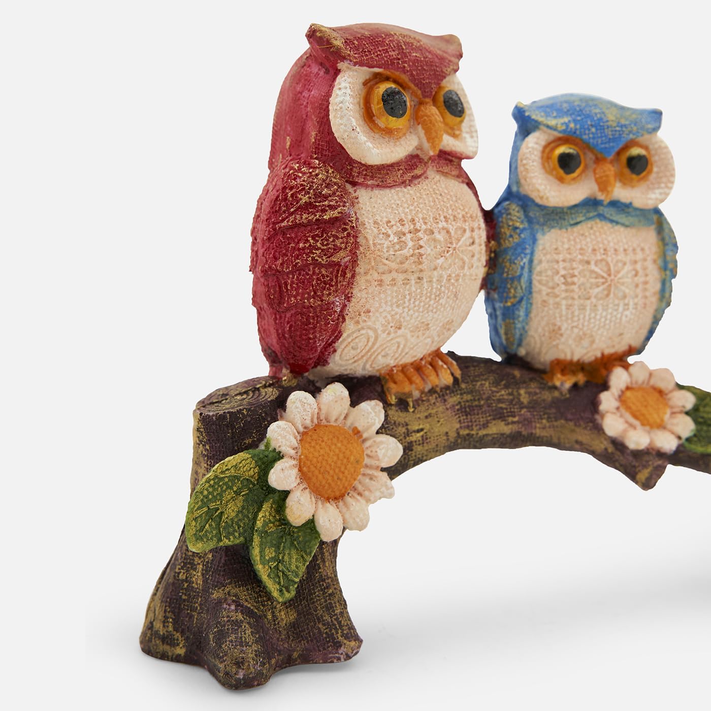 Decorative Set of 3 Owl Family Resin Figurine Sitting On Tree Branch Showpiece Statue for Table Top, Living Room, Bedroom, Office/Home Décoration, Colour Multi